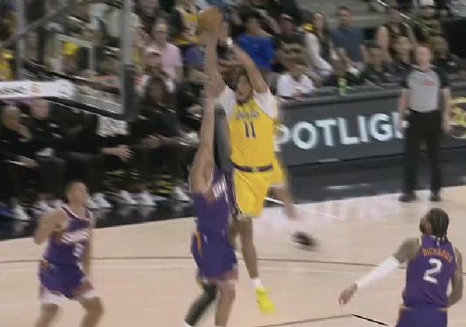 防守端,海斯繼續教布克做人,正面超級大帽。