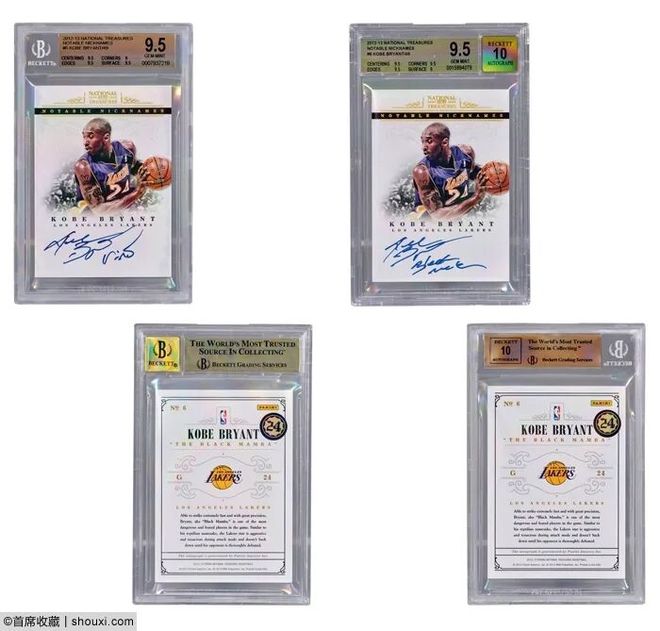 2018-19盧卡-東契奇親筆簽字球星卡48/65,PSA8,估價5000-20000元;2018-19揚(yáng)尼斯-阿德托昆博親筆簽字球星卡1/1,BGS8.5/10,估價5000-30000元;2007-08科比-布萊恩特親筆簽字球星卡44/99,PSA9,估價1.5萬-12萬元;2004-05勒布朗-詹姆斯/科比-布萊恩特雙人親筆簽字球星卡02/25,估價5萬-30萬元。
