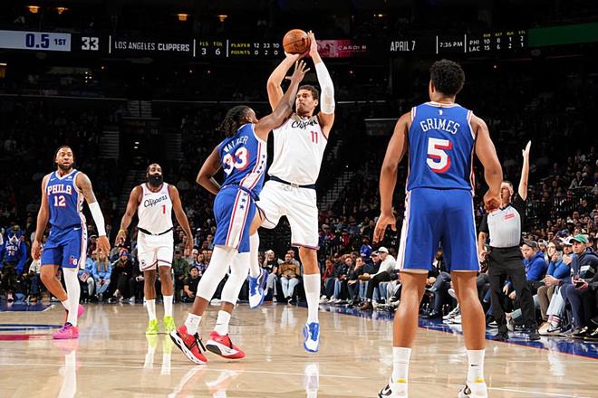本場比賽中,快船的替補中鋒布魯克-洛佩斯(Brook Lopez)的表現依然是比較一般的。洛佩斯全場出場14分02秒,投籃5中2,三分線外3中1,罰球1中1,得到了6分1籃板的數據,還有1次失誤和2次犯規,正負值為+5。洛佩斯在進攻端的效率并不理想,他的得分能力并沒有發揮出來,看起來他也沒有穩定可靠的進攻手段,而且他也沒有展現出傳球和策應方面的才能。洛佩斯在防守端的表現同樣是不盡如人意的,他完全不具備任何的籃板保護能力,而且他在護筐方面的能力也非常一般。不僅如此,洛佩斯在移動速度方面的短板依然是非常明顯的,他在場上顯得極度緩慢,很難給對手進行基本地限制??傮w來看,洛佩斯在本場比賽中的表現實在是有些普通,可以說是沒有任何的亮點。