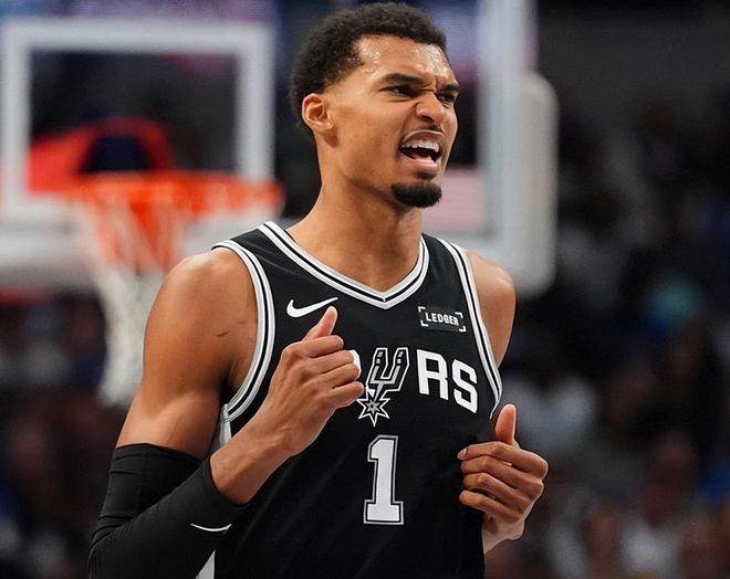 新賽季,馬刺隊的崛起有目共睹。截至目前,馬刺隊共取得9勝4負的戰績,排在西部第5位,僅落后西部第3的火箭(9勝3負)0.5個勝場。在這個過程中,文班亞馬的瘋狂進化更是讓人印象深刻,頻頻制造驚喜!看看文班在場上的瘋狂輸出和統治力吧:打揭幕戰打獨行俠,文班亞馬降維打擊雙狀元濃眉、弗拉格,爆砍40分+15籃板+1助攻+1搶斷+3蓋帽,得分創賽季新高;第二戰鵜鶘,文班亞馬硬剛胖虎錫安,豪取29分+11籃板+2助攻+1搶斷+9蓋帽,蓋帽創賽季新高;打熱火,文班亞馬豪取27分+18籃板+6助攻+5蓋帽,籃板創賽季新高;打勇士,文班亞馬拿到31分+15籃板+10助攻的三雙,助攻創賽季新高。